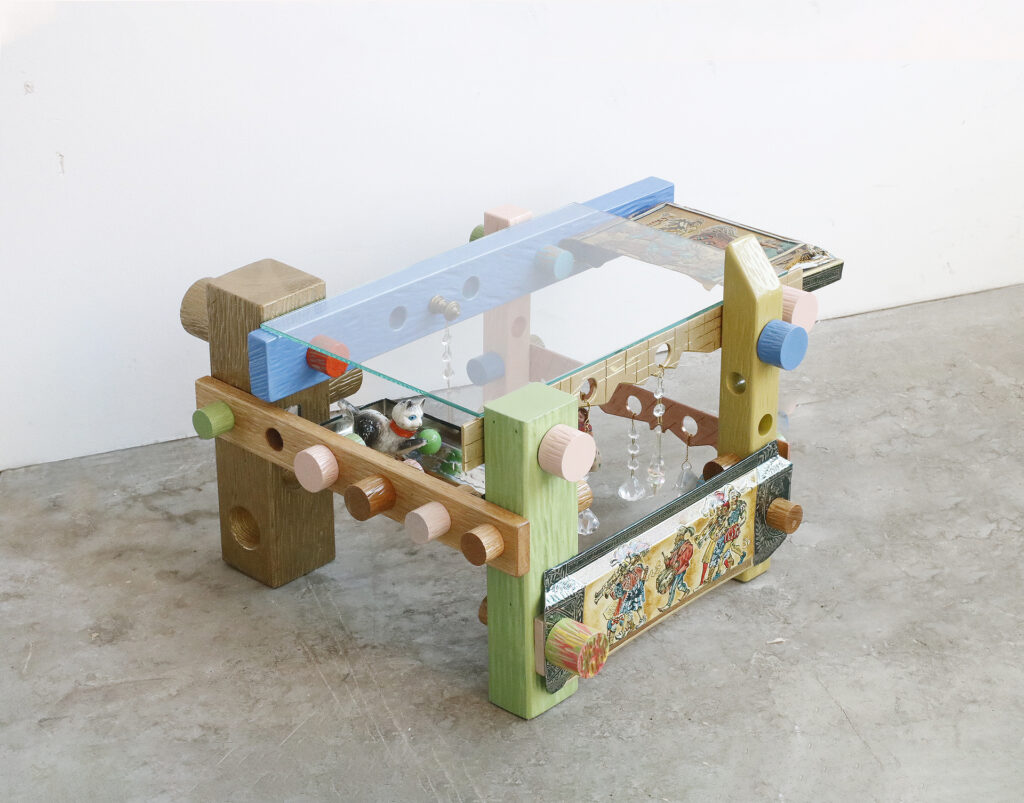 ‚Play Memory Structures’ are in some way a continuation of my ‚Play Anima‘ concept. They combine old pieces from my workshop with objects that were once part of somebody else’s life. Each element, no matter if it was manufactured by my own hands, gifted to me, bought at a flea market, or found on the roadside, has its own meaning and tells its own story, just like a single picture in an animation sequence. But as a part of a ‚Play Memory Structure‘ all pieces can serve as a projection surface for the associations and memories of other people, gain a new meaning as a unit, and become ‚alive‘ again.
